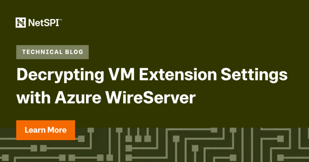 The newly added Get-AzureVMExtensionSettings PowerShell cmdlet in NetSPI’s MicroBurst repository attempts to decrypt and report all available configuration information saved from previously executed extensions on a VM. Depending on how VM extensions have been utilized on the VM, this configuration may contain sensitive command parameters, storage account keys, or even the Administrator username and password.