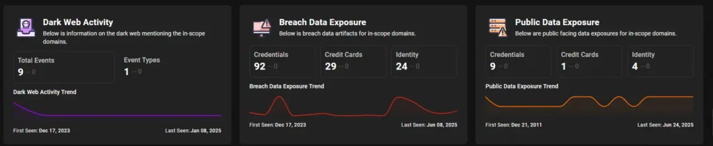 With NetSPI, you gain a 360-degree, always-on understanding of your attack surface, both internal and external. The platform automatically scans your external perimeter, including look-alike domains, and dark web exposures. NetSPI also gives you visibility across your owned assets and internal attack surface, including users, applications, devices, and clouds so you can manage your risk in real-time.